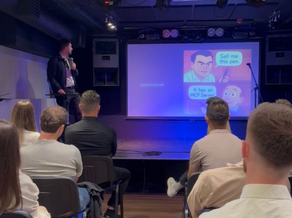 - Fatos Ismali zoomed out with clarity. He introduced concepts like MCP (Model Context Protocol) as a call for interoperability in the agent-driven AI era. His message was clear: the tools are evolving fast, but unless we think critically about reliability, interaction patterns, and shared standards, we risk building fragile systems that can’t scale.